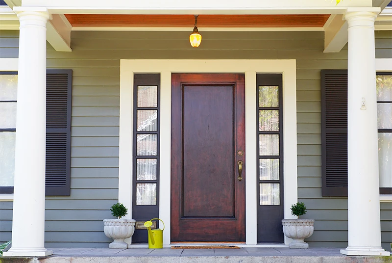 Para quem não quer arriscar na cor, essas portas são mais neutras e garantem um estilo sofisticado para os moradores. As plantas na entrada ajudam a dar um clima ainda mais acolhedor.