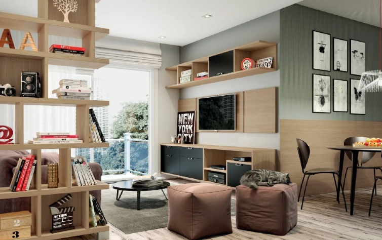 As estantes, além de permitirem a maior entrada de luz, servem para decorar seu ambiente, podendo ser suporte para objetos e livros.