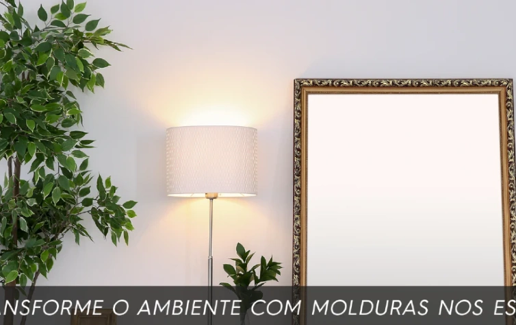 Já falamos da importância de espelhos nesse tipo de ambiente. Que tal agora dar mais personalidade para ele? As molduras dos espelhos ajudam a comunicar o seu estilo de decoração, dando um ar mais romântico, moderno, rústico ou clássico. Uma moldura mais trabalhada não precisa de muitos objetos à sua volta. Já uma moldura mais minimalista, pode estar junto de prateleiras e estantes, sem dar a sensação de muita informação.