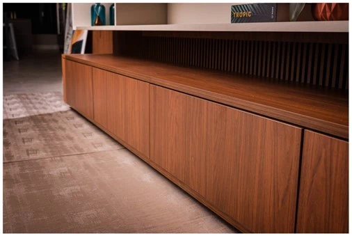 Já no caso do BP Brilho, o próprio nome já diz tudo: ele é perfeito para trazer aquela estética mais luminosa ao ambiente. Para alcançar esse resultado, é feita uma aplicação de tinta (sem o primer) e verniz transparente com alta intensidade de brilho sobre uma base em BP. Quando comparado a uma pintura laca, ele tem maior resistência à abrasão e com um melhor custo benefício.